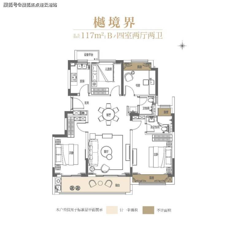 117㎡做到了四房两厅两卫!120㎡不到即可一步到位的户型设计,市场罕见!