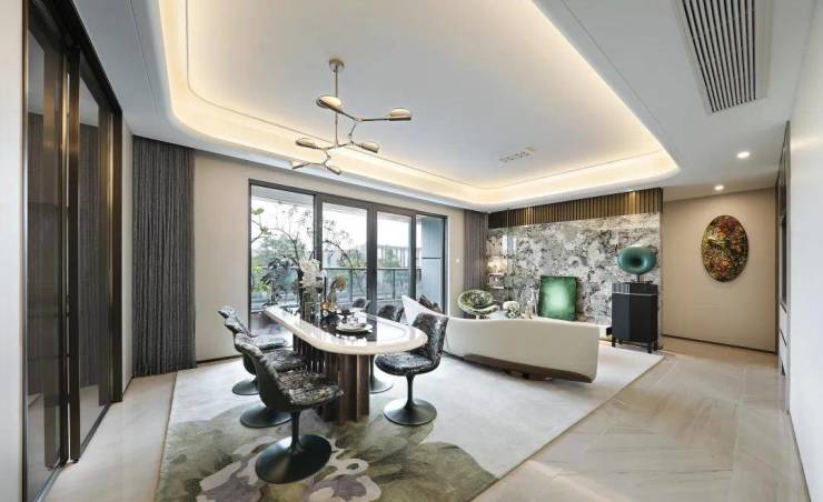 【绿城 · 汀桂里】 售楼处电话:400 808 3612 ✔✔✔每一户的门口,都设计了酒店式归家壁灯,并且刻上了房间号和汀桂里的专属花纹。这样的细节,往往只有在钱江两岸千万级的商业大平层中才会出现。再往里,玄关处设计了仿大理石台面;台面背板还细心地配上了茶镜,方便业主整理妆容;室内的吊顶,则采用了更加现代的弧形处理......