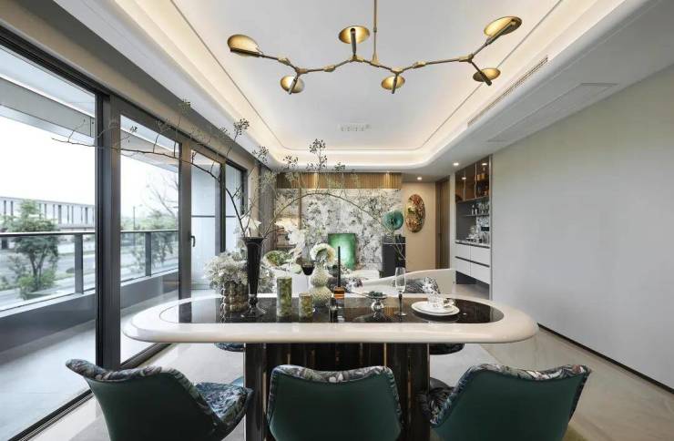 【绿城 · 汀桂里】 售楼处电话:400 808 3612 ✔✔✔建面约121方户型:贯穿南北的LDK一体化设计,从厨房到餐厅再到客厅,活动空间被完美激活,全家人的互动交流畅通无阻。书房也有近7个平米,足以用来作为房间使用,三代同堂、二胎家庭也能适配。且相比于其它同面积段户型,本户型的更大亮点在于,它的餐厅是满足能容纳下三代同堂的圆桌的,相比一般只能放下长桌的餐厅,圆桌更加符合中国人大家庭围坐的饮食习惯,一家子其乐融融。