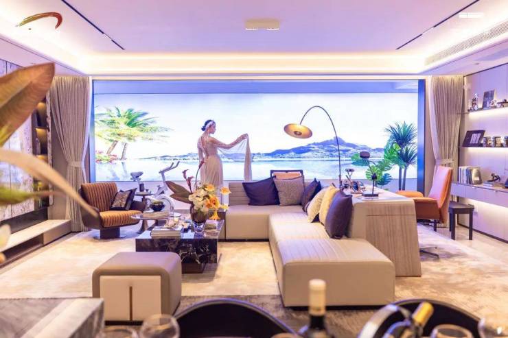 花悦江南四开间朝南,约13.2m南向阔境,让客厅、餐厅与阳台联动,可创变家庭影院、社交派对、亲子游戏等,多种空间组合随心切换。