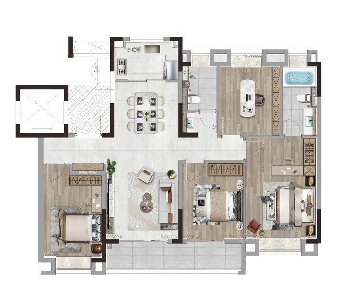对于高端改善客户来说,建面约180户型空间格局,就已经定格未来人居体验的上限。各功能区的互相交融,使日常情感得以交互、交流。