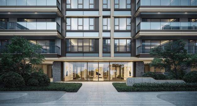 因规划条件未要求采用石材/一体板,其阳台等部位使用了真石漆,但为保证项目品质及规划条件的公建化要求,其北立面核心筒甚至侧山墙均采用全玻璃进行包裹,成本惊人,层间腰线使用大量铝板线条凸显质感。其建筑冠部造型提取湖光帆影元素,结合江南传统民居坡屋顶的形式进行设计,经设计访谈了解到是政府领导要求,对日照、布局和成本都构成了一定影响。首层单元大堂采用二层挑高的形式,气派非凡。