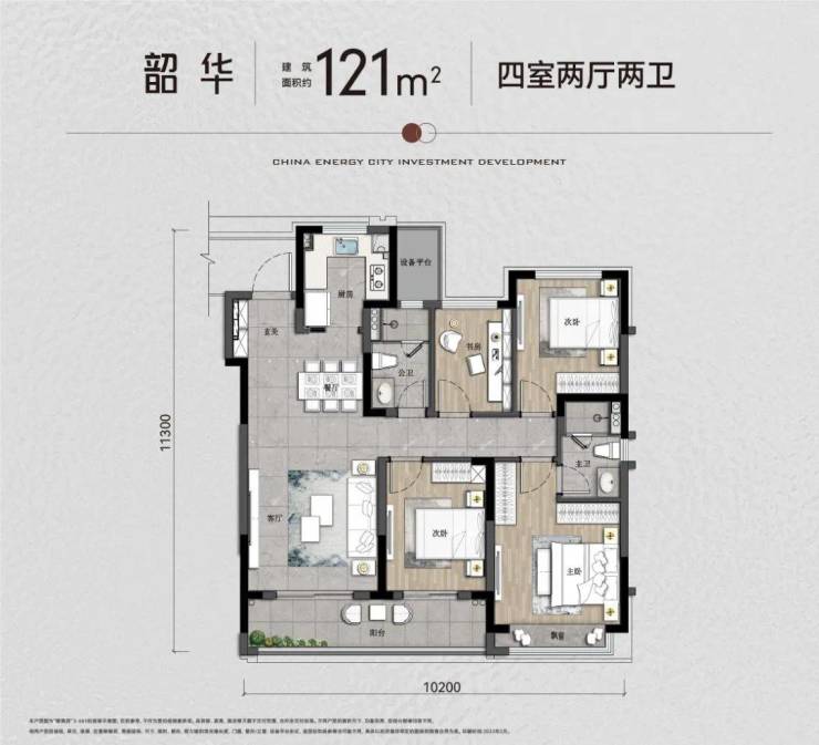 建面约121方:四房两厅两卫