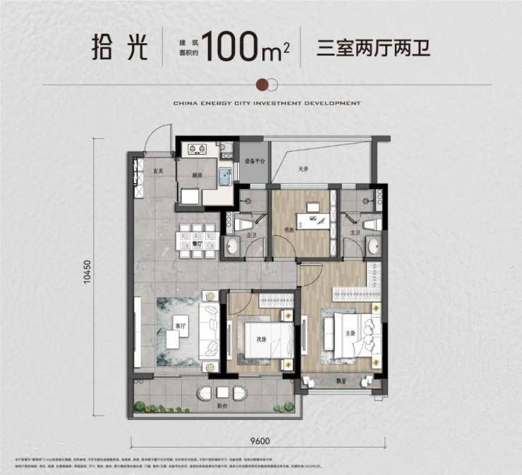 建面约100方:三房两厅两卫