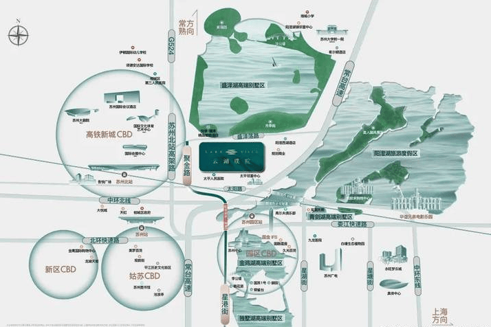 云湖璞院地处高铁新城核心区域,周边交通路网发达。苏州北站高架、苏台高速、常台高速等多条交通要道环绕,为业主提供了快速便捷的出行选择。此外,阳澄湖第三隧道(建设中)和轨交2号线北延线(建设中)将进一步丰富区域交通网络,为业主带来更为便捷的出行体验。