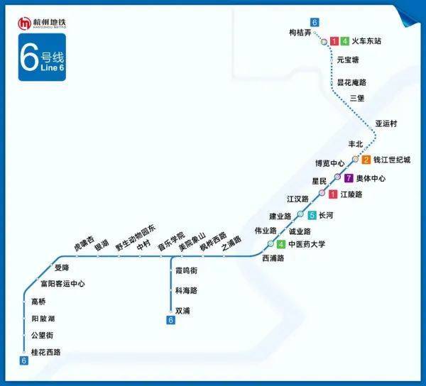 地铁6号线线路图(一期已开通,可直达之江、滨江、奥体)