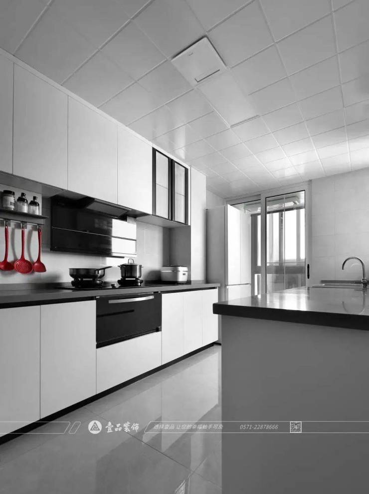 洗衣房与厨房以玻璃门分隔,最大程度保留区域分隔后的自然采光,宽阔的厨房空间让屋主的厨艺施展有了最佳舞台。