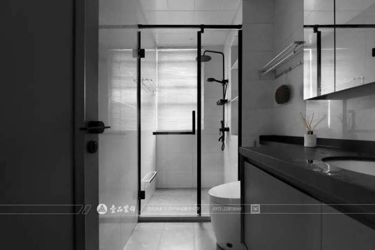 主卫与客卫都使用极简的黑白灰色调,简单利落的设计与家具配合,干净清爽。