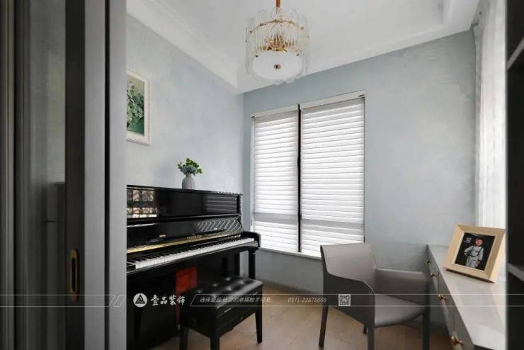 浅蓝色空间底色和与木地板配合让面积不大的书房更有温和气质。