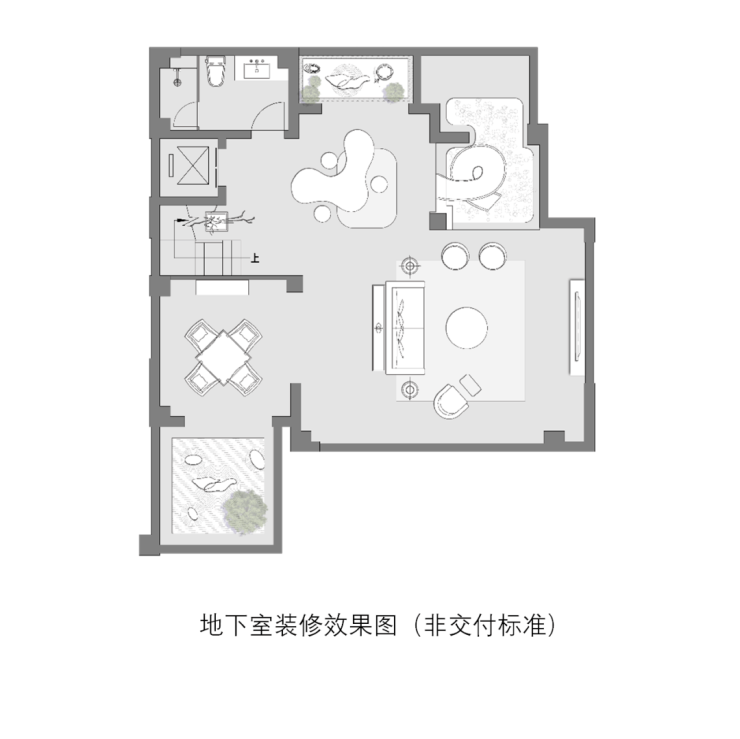地下空间挑高约5.4米,设置夹层轻松实现空间翻番。可根据业主需求,将私家影院、居家会客、酒吧茶室等诸多功能放置其中,真正做到娱乐休闲与居家生活于一体。