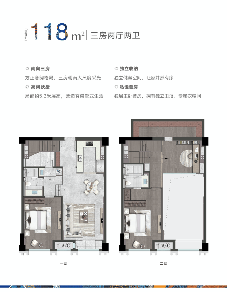 在中冶·锦绣公馆,生活被赋予更多可能性,个人与家庭并不割裂,幸福也并非抽象的符号,而是蕴含在所有日常中那生生不息的活力。中冶锦绣公馆118㎡空中跃墅,为每一个热爱生活的人,实现改善居住的需求,找到生活的归属感。