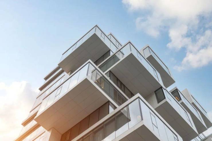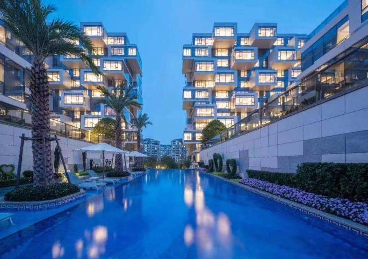 云栖名筑的建筑,绝大多数走的都不是横平竖直的常规画风,而是由一个一个的玻璃盒子堆叠而成。乍一眼看去,整个楼盘就如同一个巨型的乐高森林,高高低低的不规则建筑此起彼伏,但事实上又有规律可循。