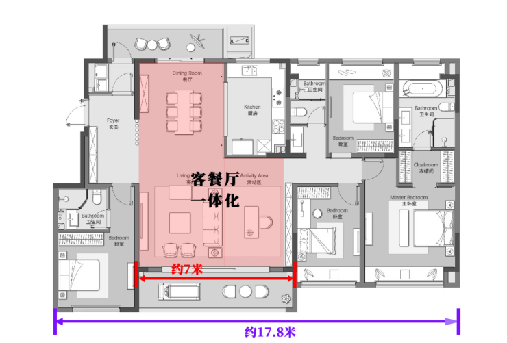 这样的户型充分说明了金字塔尖的这群人,他们对于空间尺度的需求,是首要的,只是过去没有找到可以匹配的产品。