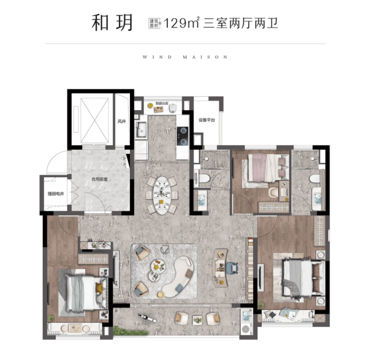 •建面约129m² (毛坯)
