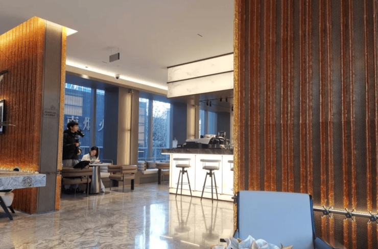 木纹铝板、香槟金铝板和真石漆的选用延续了仁恒一贯的风格,我司食品园项目在设计之初就采用了相似的风格,因此在定版定样的时候具备相当高的实景参考价值。