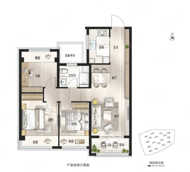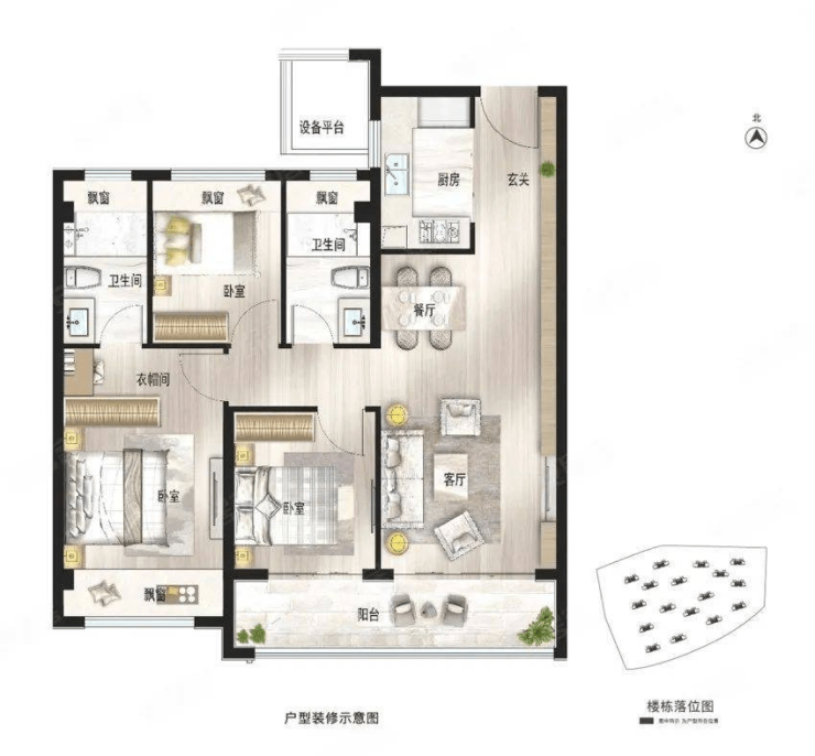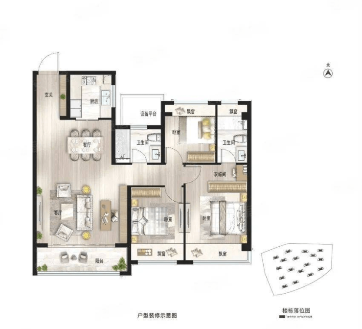 4,项目本批次房源备案的房屋套型一共2种,即,3房2厅1卫和3房2厅2卫。