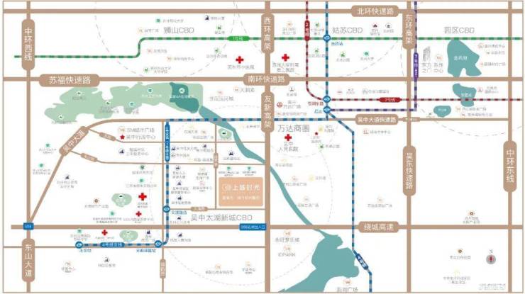 西环高架、吴中大道快速路畅行四方,连接市区各主干道形成四通八达的交通网,苏州各大商业中心均可覆盖。