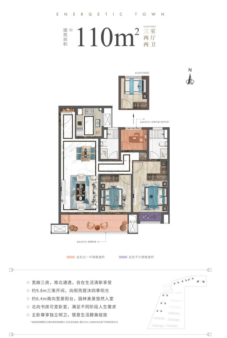 【尺度优居】建面约98-125㎡全能户型,最大约10.7m南向面宽,主卧套房配备独立卫浴,北向空间可改造多功能室,随心布局满足家庭成长周期所需
