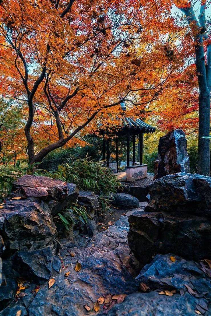留园里的红叶与亭台楼阁,浪漫登场