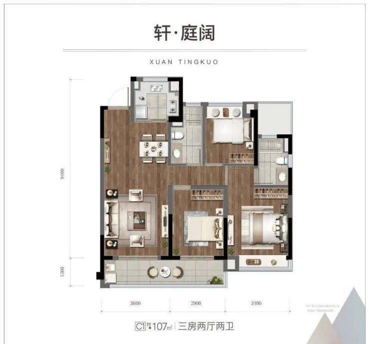主卧也配备独立卫生间,让争分夺秒的早八点,也能从容不迫。除此之外,南北双飘窗的设计,也让静谧休憩的时光里,更有美景相伴左右。107㎡尺度人生,各空间舒适阔朗,符合改善人群需求。