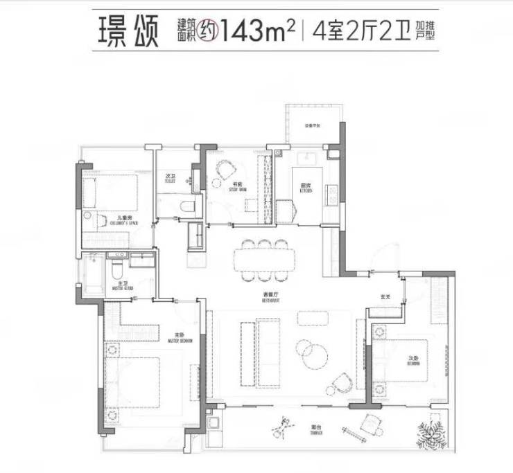 所有户型均采用大横厅+宽景阳台的设计理念,空间尺度感远超同面积段产品。部分户型还创新性地采用了中西双厨、套房式主卧等设计,提升了居住的舒适度和私密性