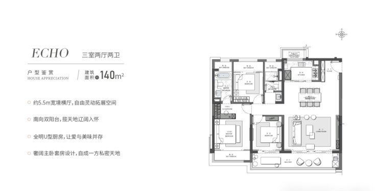 项目以现代国际风格为基调,重新定义木渎人居标准——119-188㎡人文大宅采用LDK一体化客餐厅设计,配备超大面宽景观窗与洄游动线;主卧套房融入多功能空间设计,搭配静谧书房与拓展型阳台,在彰显尊贵气质的同时更兼顾实用性与舒适度。