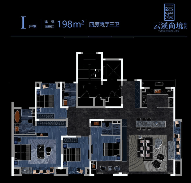 208平米4房2厅三卫户型----近20米超大面宽,菁英的生活排面