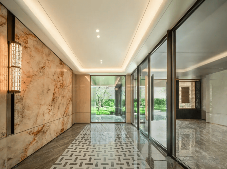 社区内打造“一芯一轴双环”园林景观体系,以“百合”为灵感,营造度假式归家体验 。