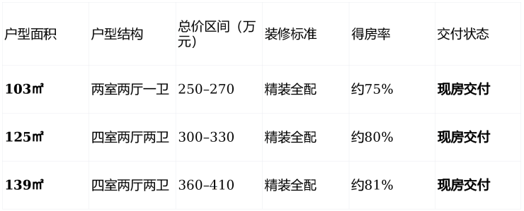 ✅ 购房建议 :125㎡四居为市场主力,采光通透、双阳台设计,适合三代同堂;103㎡两居性价比高,适合年轻家庭或投资自住兼顾。
