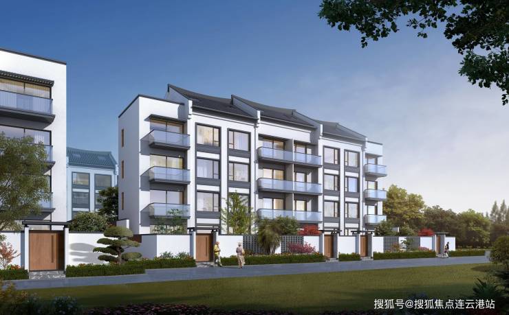建筑风格:新中式白墙黛瓦,六坊八巷布局,叠墅院墙采用全实体墙保障私密性