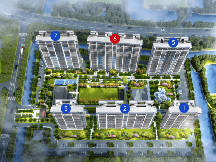 类型面积段楼层/梯户交付标准核心亮点 高层75-120㎡(2-4居)22-27层/2梯4-6户毛坯交付南北通透+三面环水户型设计75㎡(2居)、88㎡(3居)、98㎡(3居)、120㎡(4居)层高3.0米得房率72%-73%动静分区明确