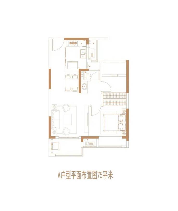 75㎡两房一卫:总价约76万起,单价约1.01万元/㎡