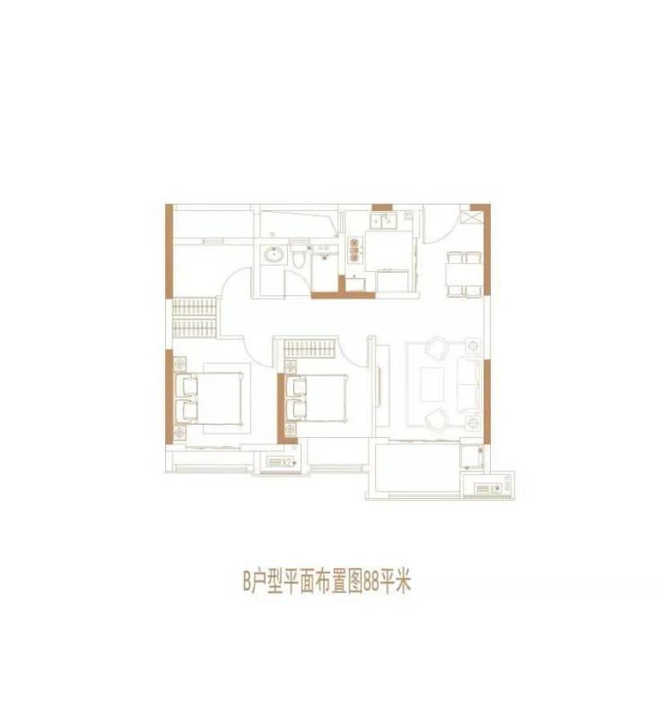 88㎡三房两卫:总价约80万起,单价约0.91万元/㎡