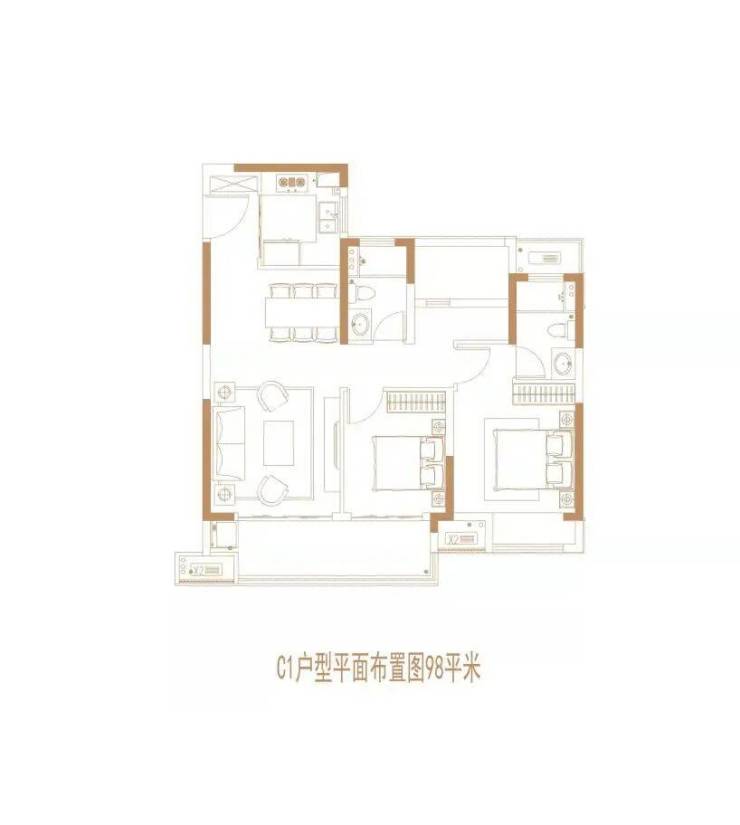 98㎡三房两卫:总价约90万起,单价约0.92万元/㎡