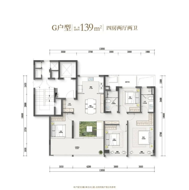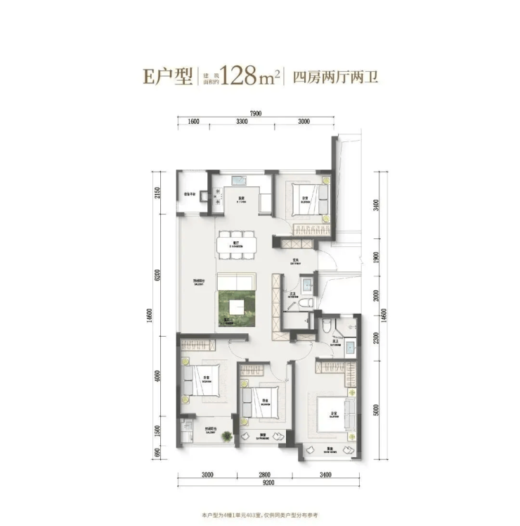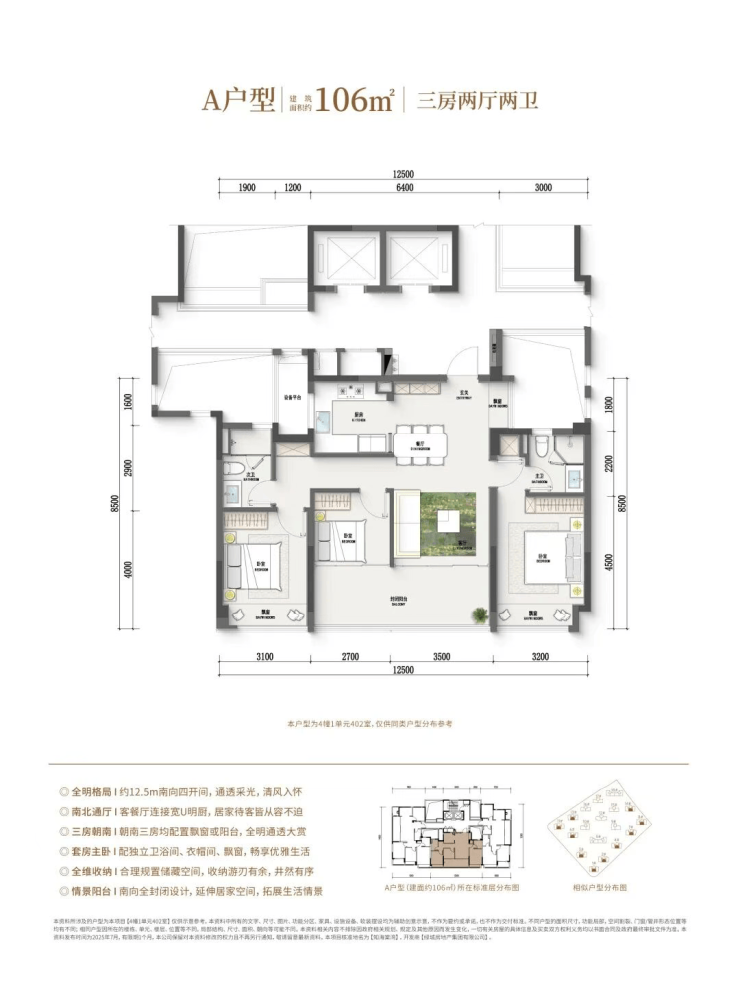 户型面积:主力户型面积段为106平方米、109平方米的三房,以及128平方米、139平方米、164平方米的四房户型。其中,106平方米户型做到了四开间朝南。