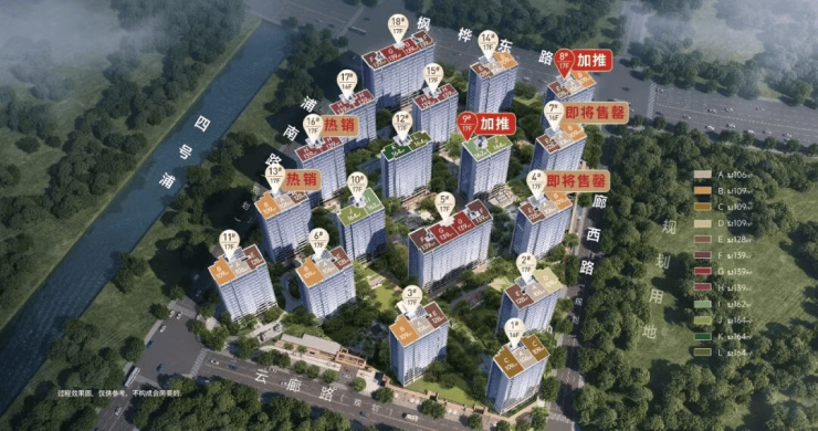 产品设计:项目定位为“年轻化、知性美”的海棠系住宅,采用现代化建筑风格,并打造了“抬地艺术”住区,利用约3.2米的高差设计立体园林。社区内规划有童玩区、艺展空间、下沉会客区以及无界泳池等设施。