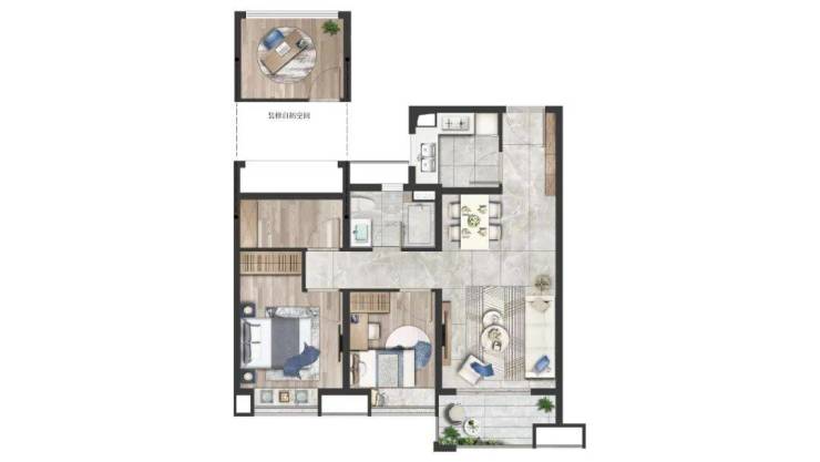 约85㎡的户型做了三房一卫的设计,而且还是三开间+两卧朝南,单阳台的设计非常适合小户型,这样南次卧就可以拥有更大的室内空间,不会很鸡肋。