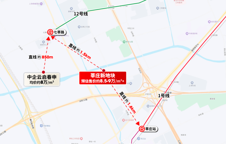 莘庄板块近两年只有保利建工海玥锦上、中企云启春申两个新盘,均在莘庄商务区,售价在8万左右。