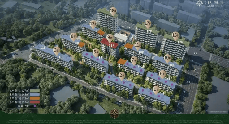 户型配置:小高层约127㎡,洋房约144㎡ /170㎡/197㎡,共604户