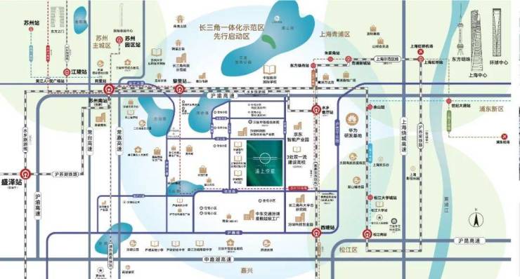 轨道交通:距在建苏州南站(汾湖站)约6公里,沪苏湖高铁通车后直达上海虹桥枢纽
