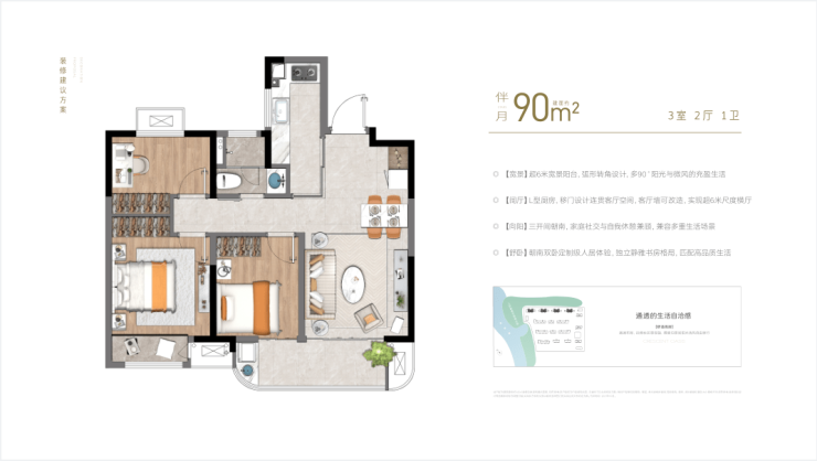 91㎡三居室:经典竖厅设计,南向双卧+U型厨房,总价约142-155万