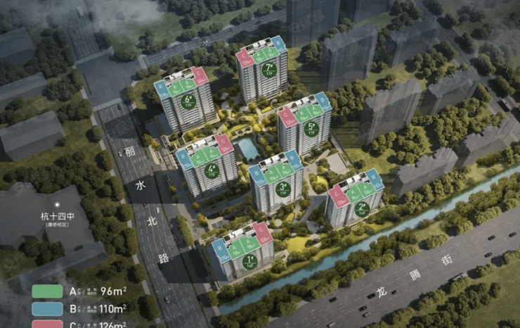 价格与户型:项目精装限价29500 元/㎡,主力户型建面约96-126㎡,总价区间约277-387.5 万元,是拱墅区主城少有的"2 字头”限价盘 。