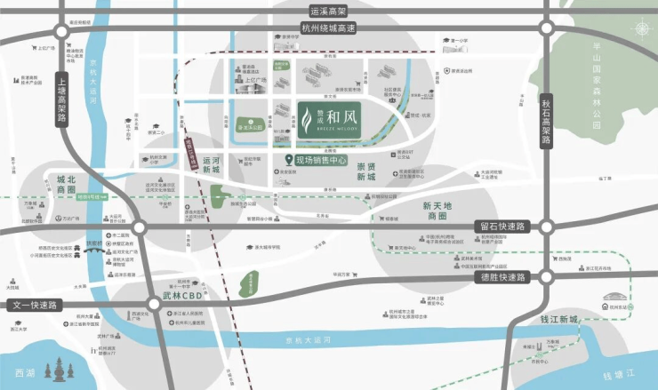 项目地处崇贤新城核心,可享大运河新城与大运河科创城的双重发展红利。交通方面,周边有秋石高架、上塘高架等城市快速路,可便捷通达主城核心区域。同时,项目距离在建的地铁15号线崇杭街站直线距离约587米,未来轨道交通出行将更为便利。400 998 3632月语和风里营销中心电话