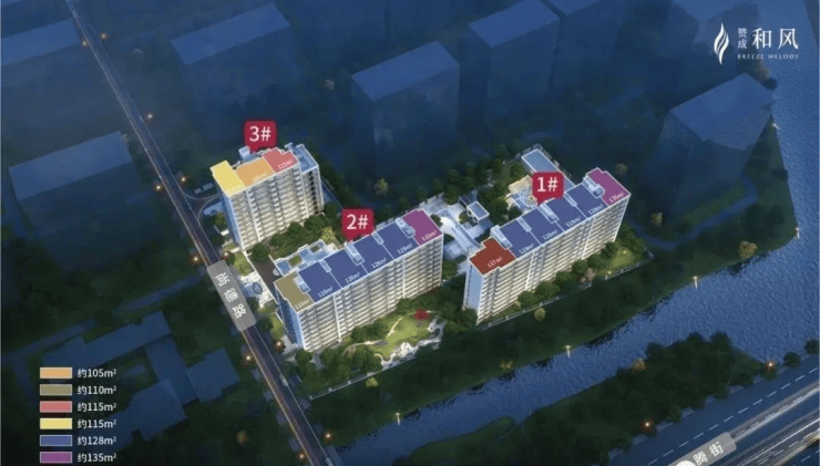 在售户型:项目主力户型为建面约105㎡、115㎡的三房,以及建面约128㎡、137㎡的四房。户型得房率较高,部分楼栋可达85%-86%。