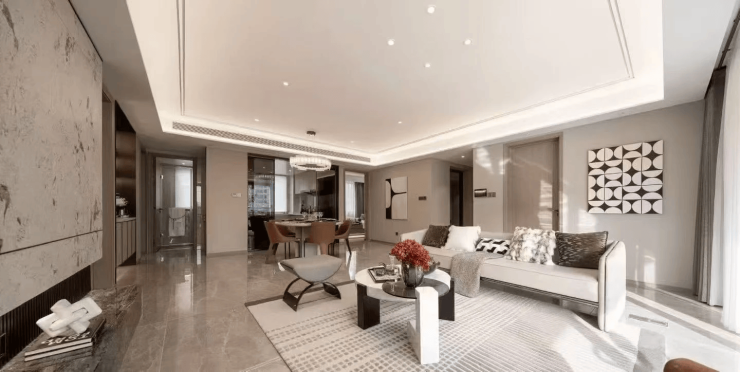 户型设计采用LDKB一体化(客厅、餐厅、厨房、阳台连通)超奢享空间,提升通透感与互动性;