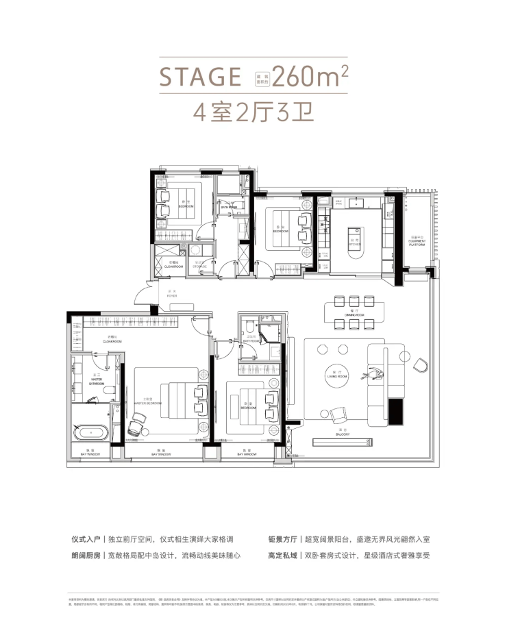 240㎡+ 4–5室2厅3–5卫 850 – 1,360 35,400 – 46,000 顶层复式,私人电梯厅+星空露台,圈层资产级产品