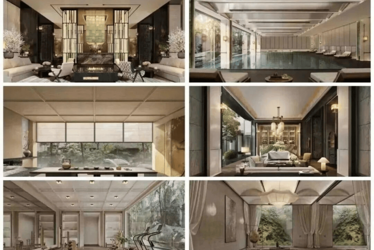 下沉式会所:约2200㎡私享空间,含恒温泳池、茶室、私宴厅、健身房、瑜伽室、会客吧,业主专属社交场。