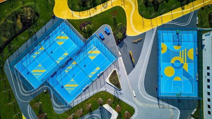 活力园区:健身跑道、儿童乐园、滑板场地、综合运动区