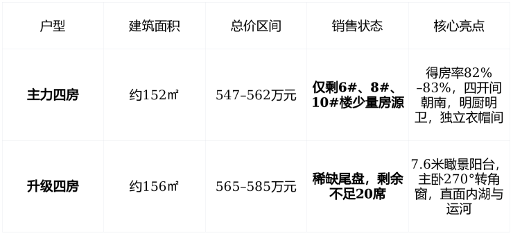 产品形态 :仅7栋10–12层南向滨水洋房,总户数 153席 ,容积率 1.49 ,绿化率 30% ,纯低密改善社区,无高层干扰。
