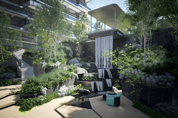 以中央立体水庭为核心,匠心营造沉浸式垂直森林景观,缔造立体森林岛屿之境,实现传统礼序美学与现代人居体验的深度融合。